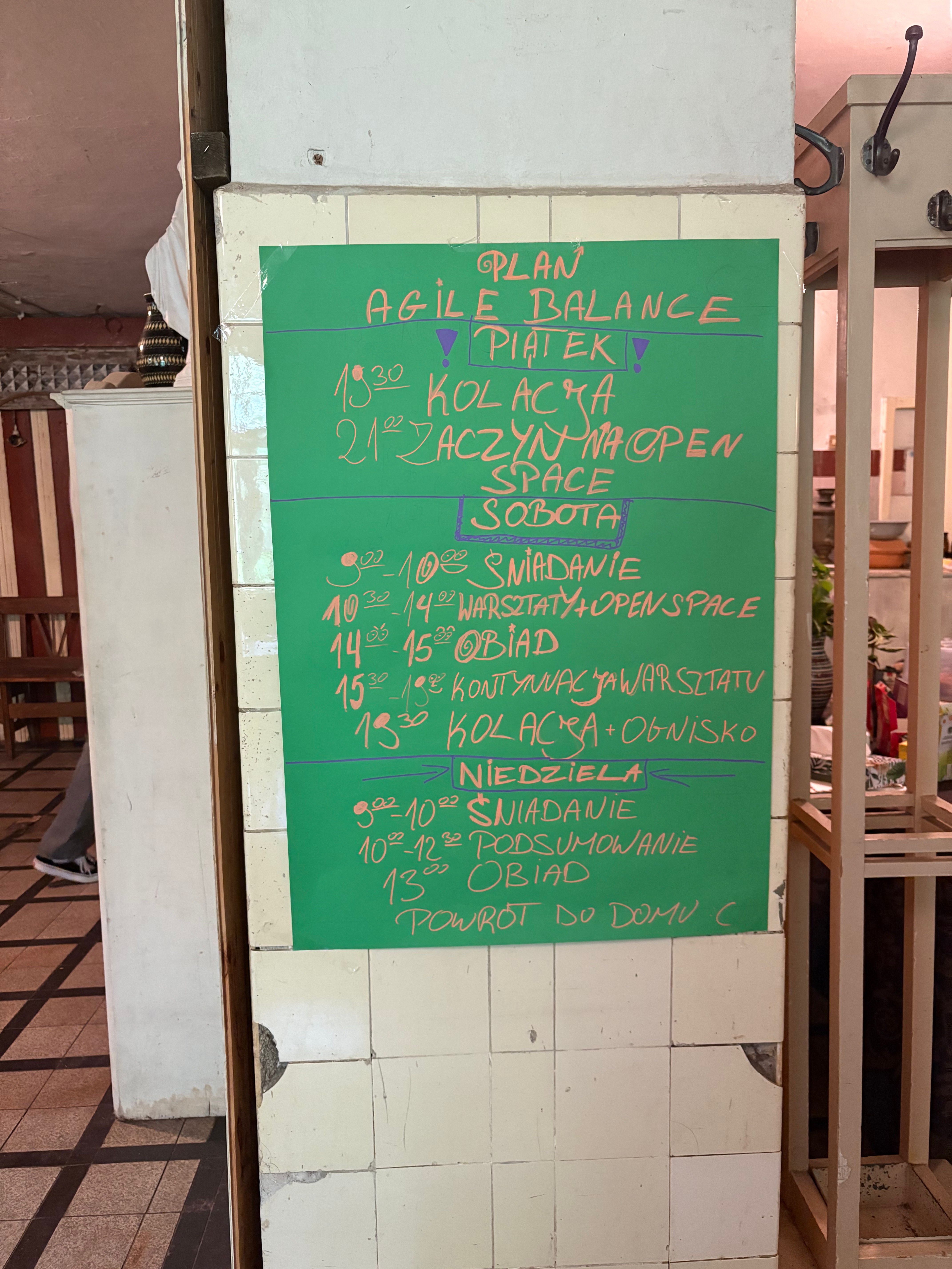 Tworzymy przestrzeń do bycia bardziej offline, bez dystansu eksperci-uczestnicy, w tempie, które sprzyja autentycznej integracji, a nie kognitywnemu wyczerpaniu.